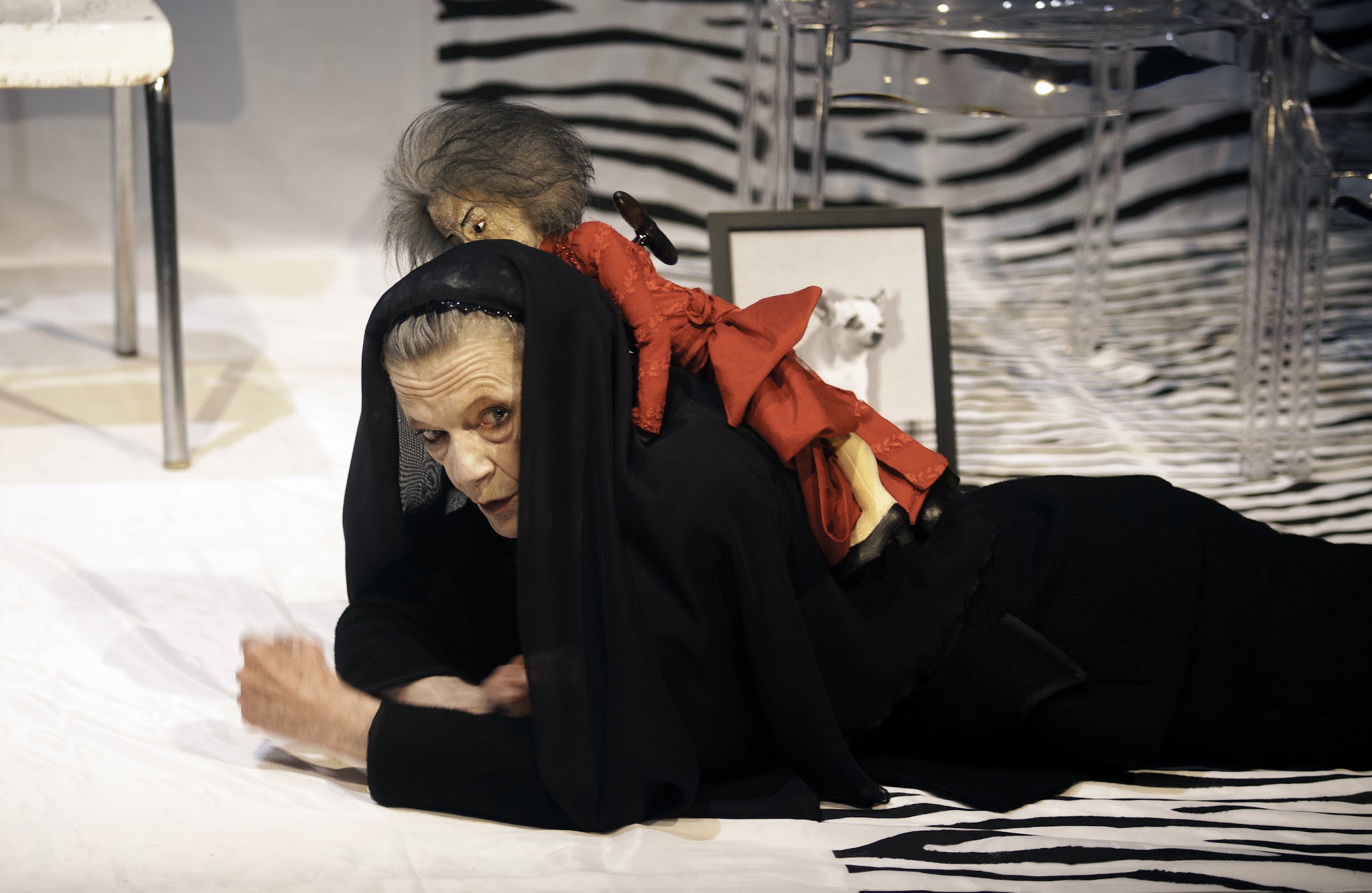 Sous le chapiteau de Vidy (mais pourquoi là ? et pas dans la grande salle ?) on découvre le couple présidentiel qui vient d’échapper à un attentat. Lui se fait faire un massage par son masseur préféré qui lui raconte des histoires drôles. Elle, ébranlée, pleure la mort du colonel de la garde (un héros) et de son chien (un carlin). C’est Thomas Bernhard qui les fait parler et puisqu’on est chez TB, le discours va être un fleuve, un déferlement de pensées en tourbillons, de préjugés, de haines (contre les contestataires, les philosophes, les étudiants) mais aussi de mensonges et de nostalgies. Le flot emporte le spectateur, porté par deux acteurs excellents, elle, en figure déjà morte au visage blafard ou aux seins dressés de pin-up et lui tout en rondeur manipulatrice, porté par une mise en scène pleine de belles trouvailles, rideaux, marionnettes et coups de cymbales. Le spectateur encaisse, vacille, s’émerveille de cette plongée dans des psychés déviantes qui pourraient être la sienne propre. Âmes sensibles, s’abstenir.