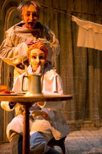 Pour réussir ce pari, les comédiens, accompagnés par la metteuse en scène Evelyne Castellino, on joué sur une condensation du texte, un jeu hyper physique, tout en énergie et en image, et des personnages identifiés par des masques, très réussis. Le spectacle est un tourbillon d’élans, d’idées, de situations qui se percutent. Il y a des gags tout le temps, du premier au dernier plan, et toute l’intrigue passe, à travers le mouvement et l’humour.