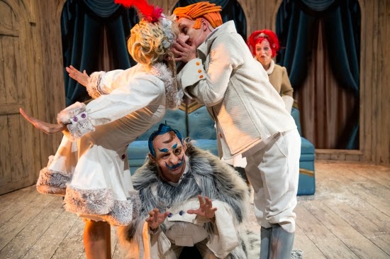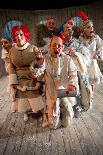 XXIème siècle : les Artpenteurs sont une troupe de théâtre de Suisse romande, intègre et talentueuse, qui aime se lancer dans les défis les plus fous. (comme monter un western sous petit chapiteau, ou arranger un spectacle de lecture de textes de SF). Là, associée avec le Petit théâtre de Lausanne (dont on ne louera pas assez le bon goût de la programmation), ils ont eu l’idée dingue de monter cette comédie pour des enfants. En condensant l’intrigue sur 1h15, avec des danses et des chansons (en russe) ! Nous y avons emmenés Rosa et Marguerite, assises au premier rang avec d’autres enfants, et elles ont tout saisi et tout compris. Les magouilles, l’argent qu’on échange, les illusions et les espoirs déçus.