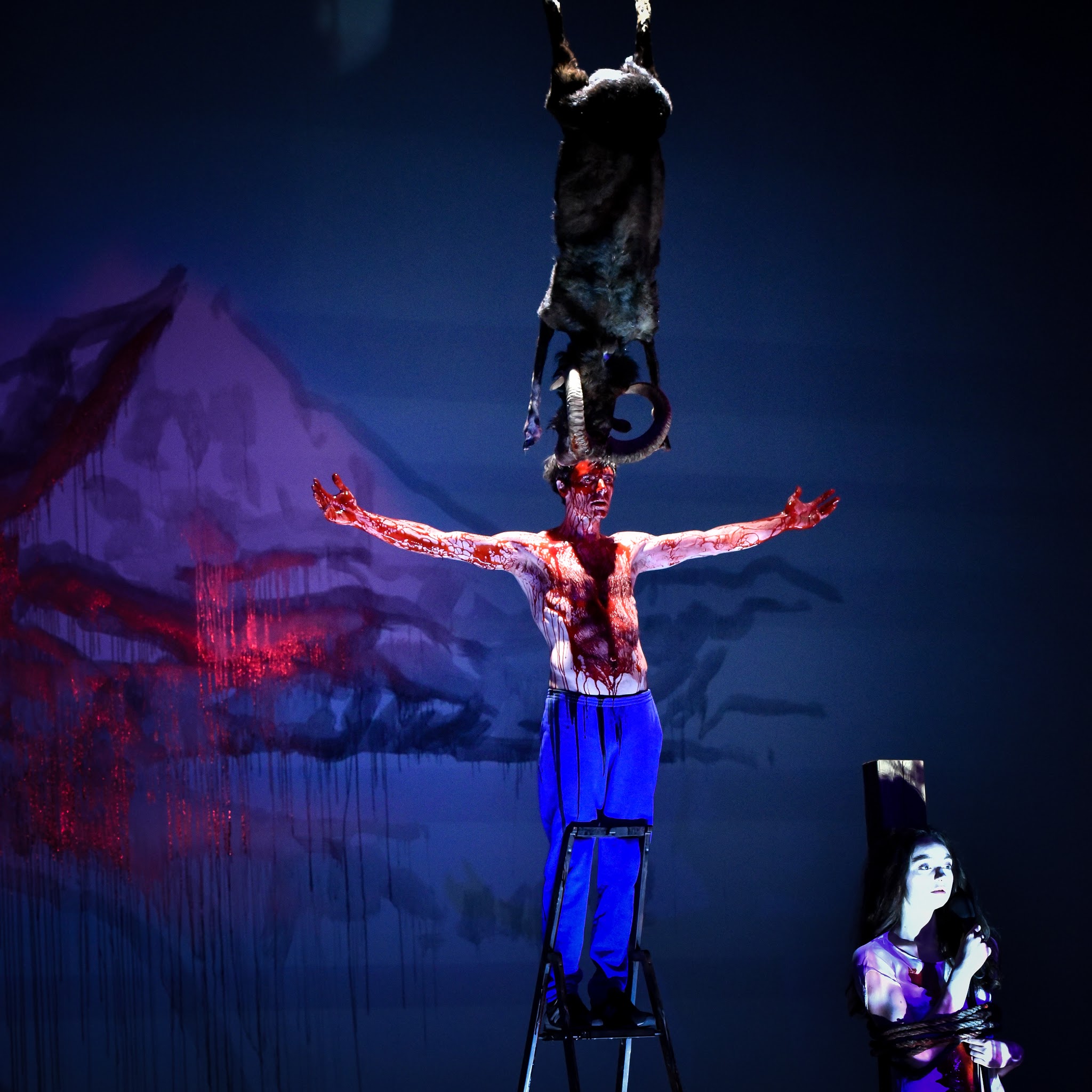 Dans la mise en scène de Kostia, Nina en vierge sacrificielle déclame un texte de métaphysique-animiste bizarre, Kostia passe de l’électro à fond, poignarde un cadavre de bouc et s’asperge de sang les bras en croix, ça dépote, et Irina éclate d’un rire moqueur. Pendant les deux heures qui vont suivre, on va accompagner les plaisanteries, le mal-être de ces personnages en vacances au bord du lac, on va assister à leur hésitations et leurs compromissions, sans jamais cesser de les aimer et d’avoir peur, et de nous désoler pour eux. Les acteurs, pour la plupart déjà vus dans les Revenants, sont tous bons, tous brûlants, avec un très beau jeu de corps, de postures, de visages.