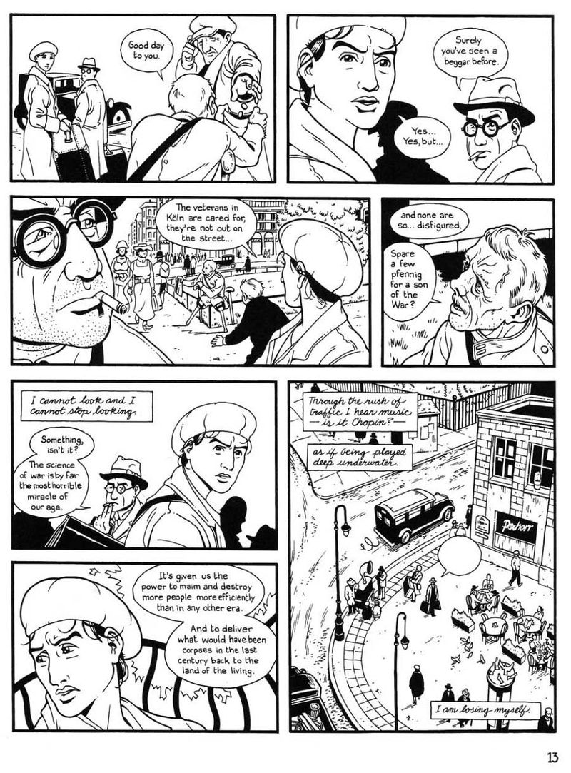 Berlin, 1929. Marthe Müller, une jeune femme plus si jeune, venue voir et peindre, rencontre dans le train Kurt Severing, un journaliste intellectuel et blasé. Nous allons suivre l’arrivée en ville de Marthe, sa découverte de la ville vibrante, violente et vivante. Des intrigues secondaires nous emmèneront dans une famille de prolétaires, chez des juifs ou dans la suite des musiciens noirs d’un orchestre de jazz américain. Art décadent, luttes politiques, perception désabusée du monde, cauchemars en gestation…
