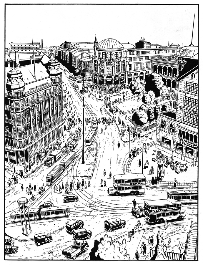 Berlin, 1929. Marthe Müller, une jeune femme plus si jeune, venue voir et peindre, rencontre dans le train Kurt Severing, un journaliste intellectuel et blasé. Nous allons suivre l’arrivée en ville de Marthe, sa découverte de la ville vibrante, violente et vivante. Des intrigues secondaires nous emmèneront dans une famille de prolétaires, chez des juifs ou dans la suite des musiciens noirs d’un orchestre de jazz américain. Art décadent, luttes politiques, perception désabusée du monde, cauchemars en gestation…