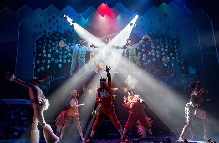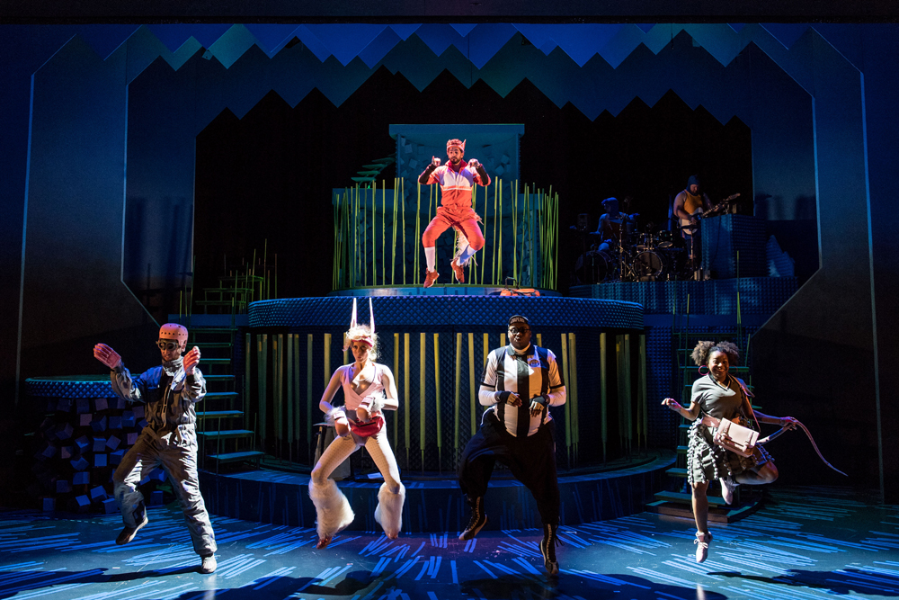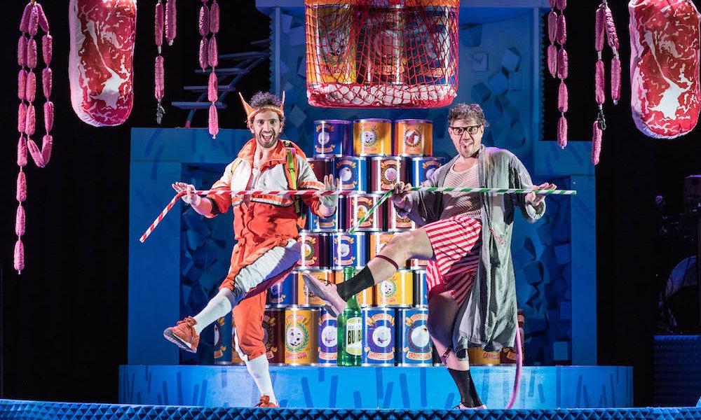 J’avais bien sûr en tête la très curieuse adaptation de l’histoire par Wes Anderson. On est ici dans une version bien plus fidèle au récit d’origine, malgré quelques créations de personnages et ajouts narratifs amusants. La comédie musicale de ce type est un équivalent pour le spectacle vivant du film hollywoodien pour le cinéma en général. Plein de pognon, des acteurs énergiques qui savent tout faire (jouer, chanter, danser) et des décors énormes et compliqués. Certes, c’est très formaté (narration très codifiée, dialogues avec blagues pour les adultes, personnages de faire-valoir un peu absurdes, etc.), mais quand c’est bien fait, ça donne un spectacle très agréable, ce qui a été le cas pour nous. On a admiré la pêche des acteurs, profité de la musique live sur scène, rigolé aux costumes et aux scènes d’actions burlesques et profité de chansons plutôt bien écrites. Détail rigolo, le spectacle adopte tous les codes du film de casse, ce qui dynamise bien la narration.