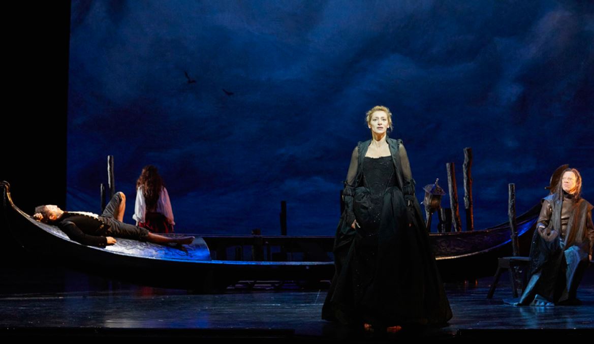 Cecci a aussi aimé la mise en scène, très lisible, bien rythmée (deux heures vingt sans entracte), avec de très belles images: la gondole au petit matin avec les filles et les hommes en vrac tout autour, Lucrèce avançant sur des planches d’aqua alta, le palais Borgia avec ses lettres énormes et l’horrible et malsaine danse finale de Gubetta avec les amis de Gennaro, tous empoisonnés, jusqu’à l’image finale morbide avec les corps abandonnés contre les poteaux. Waow !