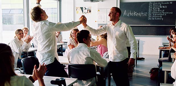 Dans ce film, un prof anar dans un lycée allemand donne un cours sur l’autocratie lors d’une semaine thématique et crée un mouvement proto-fasciste parmi ses élèves, « la Vague », avec tenue officielle, salut, logo et page Myspace (on est en 2006, remember ?). Bien sûr, ça tourne mal.