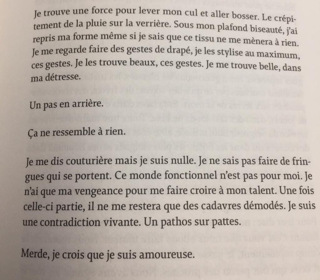 Le livre est une pure création de son autrice, à la fois cohérente dans son arc principal (la marche sur Eurodisney est-elle un rêve ou une réalité ?) et pleine de digressions sur la matière, les vêtements, les looks, nos apparences. L’enfance y est une matière plastique, magique, infinie, incompréhensible. Le salut jaillit des toutes petites choses.