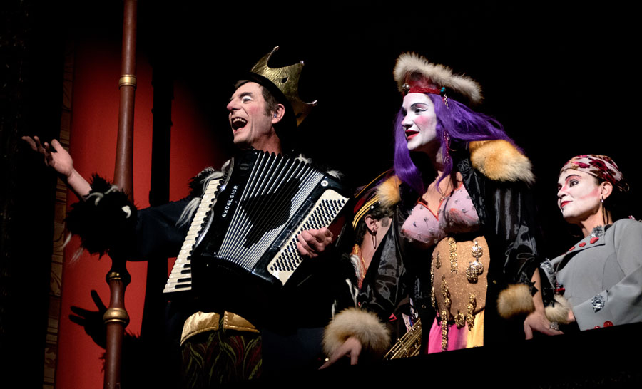 La compagnie monte cette pièce depuis vingt ans (!!!). C’est drôle, chatoyant, musical, bourré d’idées. Les acteurs sont excellents, jouant chacun une poignée de rôles, passant de l’un à l’autre avec une perruque, une paire de lunettes… L’histoire et sa métahistoire sont présentes, on les voit se déguiser, se maquiller, bouger les décors, tout en restant dans le récit. On s’inquiète pour la reine Hermione, on rit de voir le fripon berner le berger, on a peur de la folie du roi…