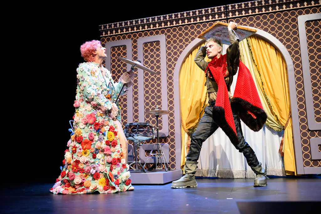 Il y a tout ce que j’aime dans le théâtre : un monde imaginaire fort, de la suggestion, des images dingues (le roi, perché sur son trône trop grand… Fantasio assis au bord de la scène et comptant le temps qui passe…), du jeu très (très) physique, des émotions puissantes… les acteurs sont tous incroyables. Fantasio, bien sûr, à la fois brûlant, moqueur et fragile, et la princesse enfantine et volontaire, et le prince de Mantoue, sorte de Freddie Mercury surexcité… je ne les cite pas tous mais tous portent la pièce, haut et loin.
