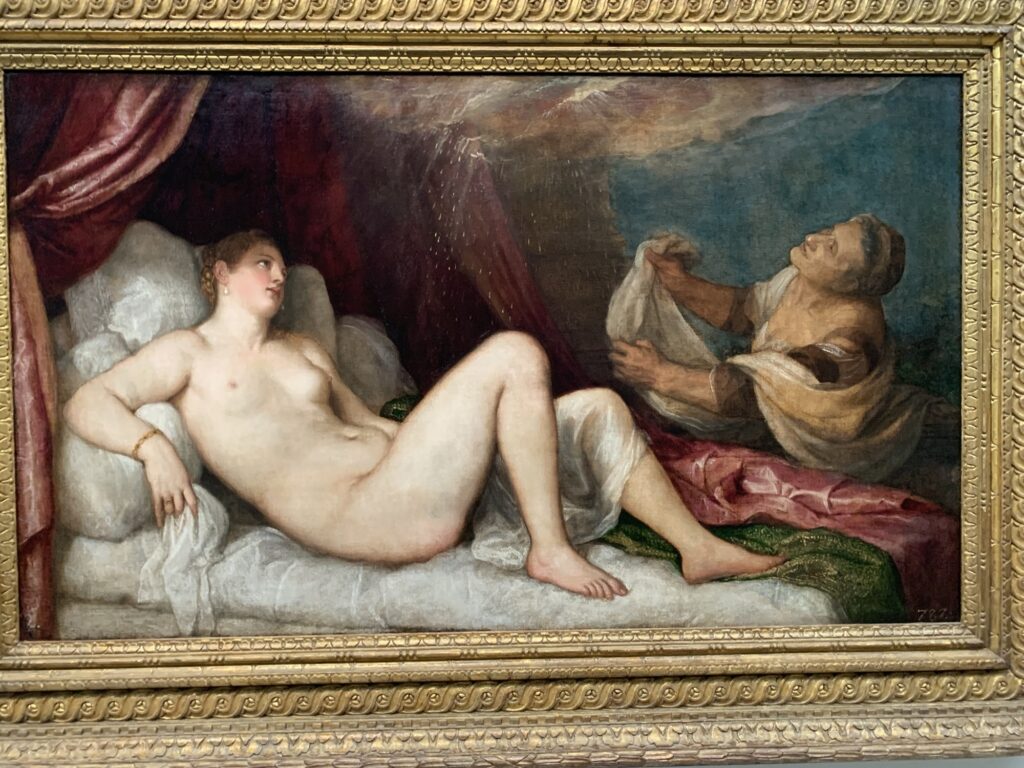 Danaé et la pluie d’or, par le Titien. Un des mythes les plus chelous, selon moi.