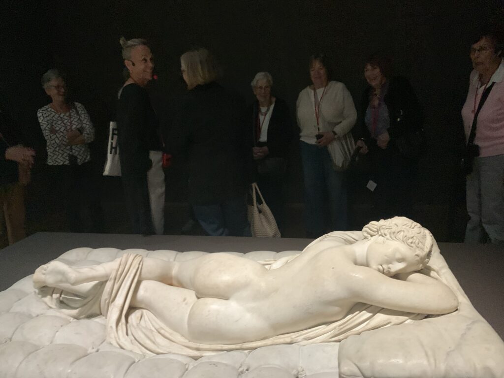 L’hermaphrodite Borghese, exposé dans la pénombre. Il aurait fallu filmer les rires un peu gênés que cette oeuvre provoque encore.