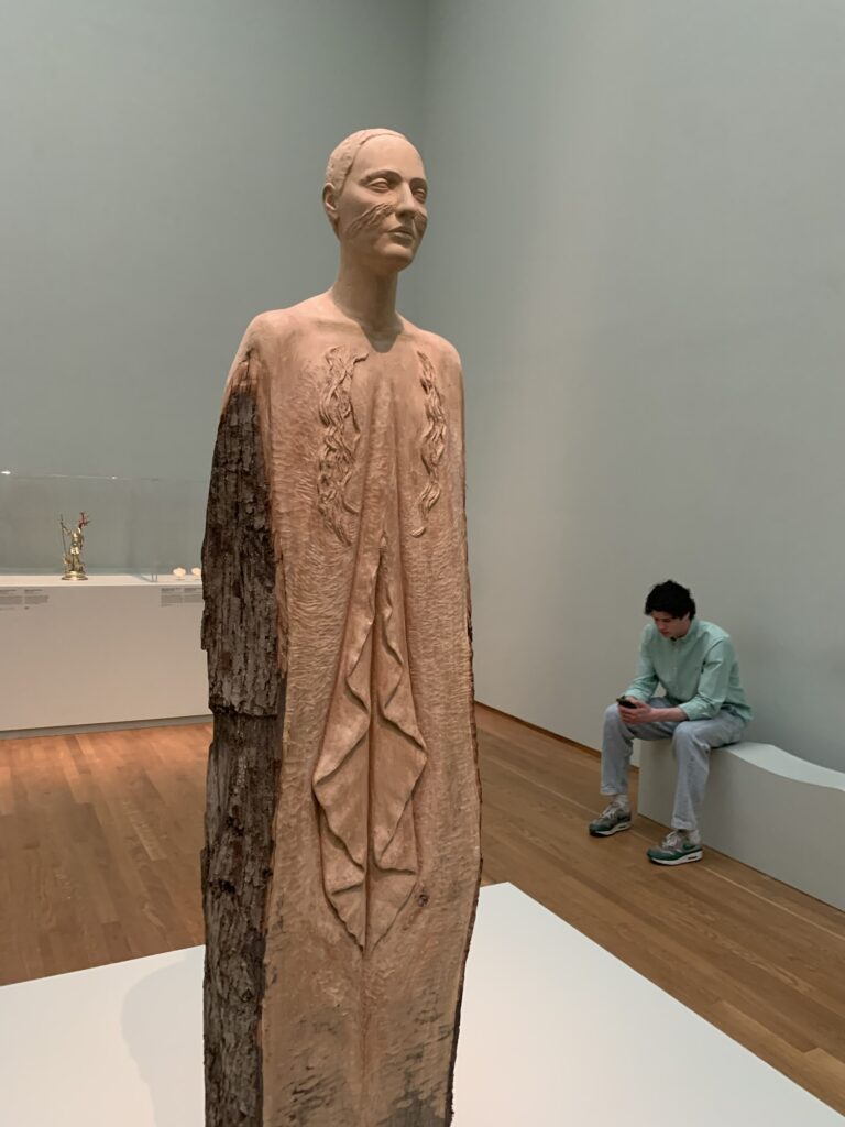 Une femme sortant d’une pièce de tilleul (sculpture contemporaine)