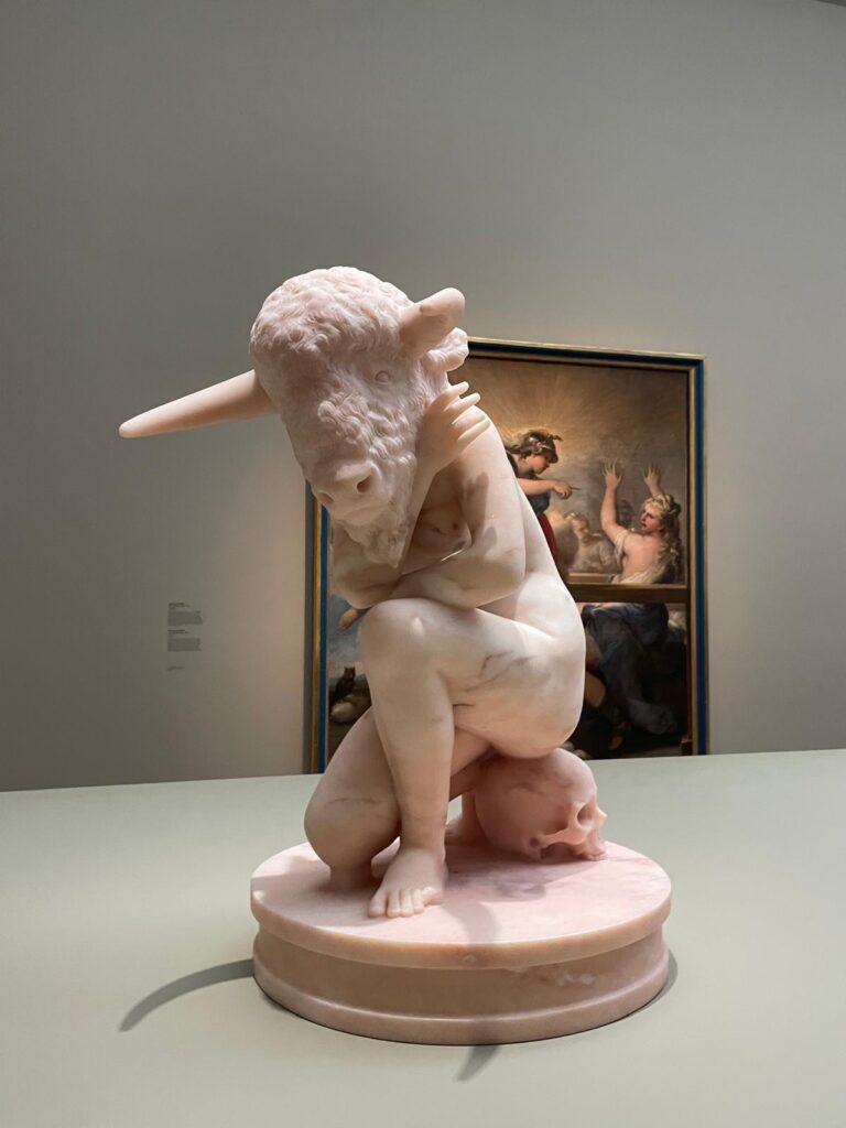 « Zeus », par Nandipha Mntambo, une sculptrice contemporaine. Je suis super fan de ce travail : les cornes, la matière, le regard, le fait d’avoir donné sa propre poitrine à un dieu macho-macho pour rappeler combien il est plastique. C’est magnifique.