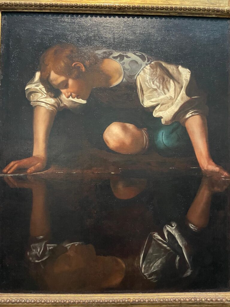 Et le Narcisse du Caravage. Ca donne envie d’imaginer l’histoire qui pousse ce jeune napolitain du 17ème jusqu’à un étang enchanté