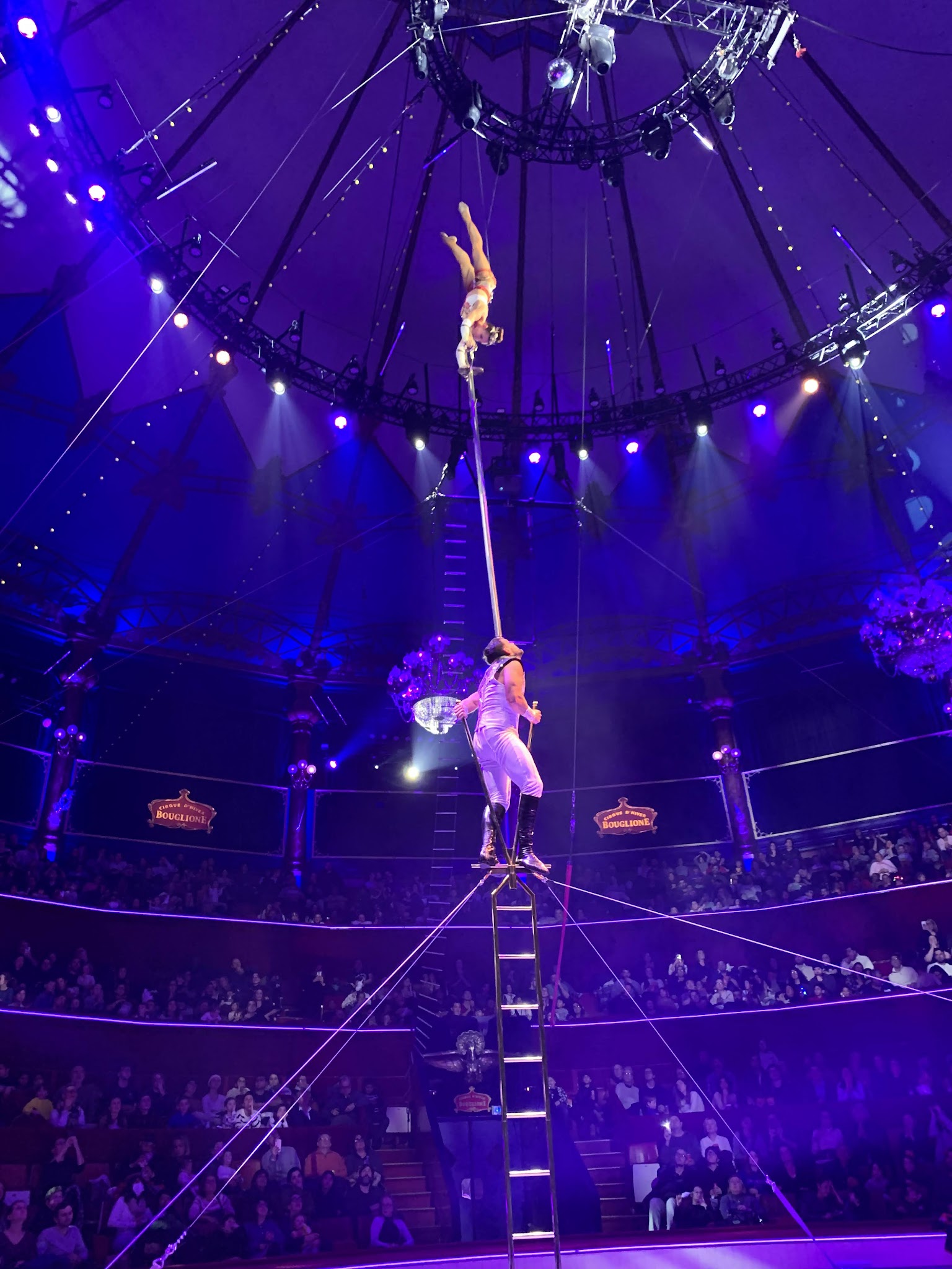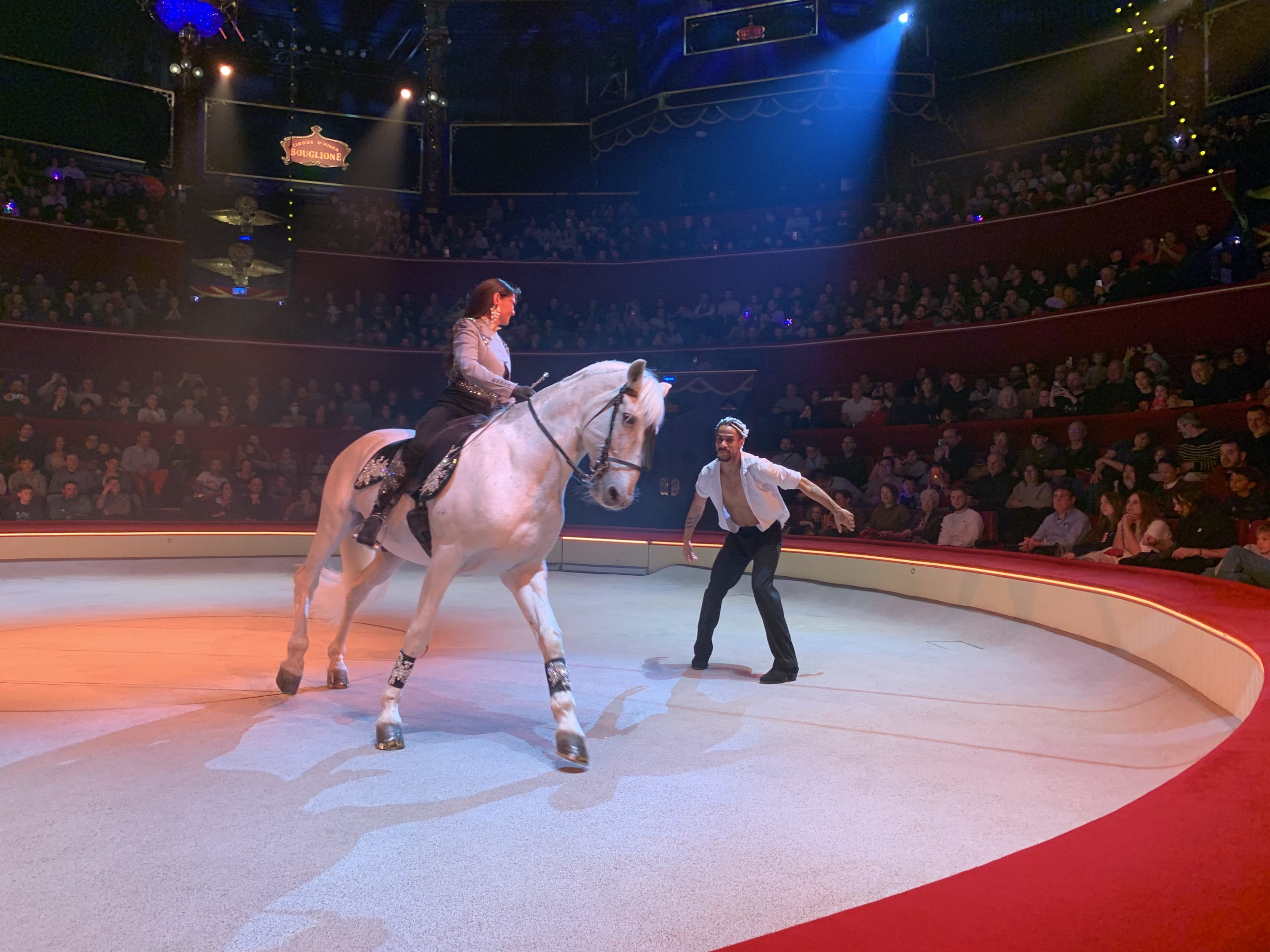 Comme chaque année ou presque, nous sommes allés assister au spectacle du Cirque d’Hiver Bouglione. Et comme l’an dernier nous avons pris des places au premier rang, parce que pourquoi pas, c’était notre cadeau de Noël.