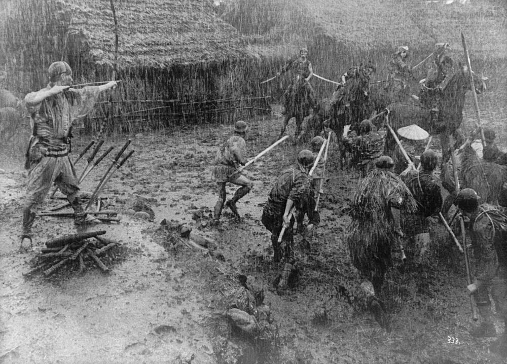 Dans ce film, on trouve : un village plus vrai que nature, des paysans toujours inquiets, des samouraï aux motivations variées, des distances de classe, un unique personnage féminin, des sabres, des scènes de bagarres épiques mais pas que, une attention aux paysages, aux sons de la nature, des leçons de ruse et de stratégie, Toshiro Mifune qui fait des grimaces. C’est un très grand film, très long et très rythmé.