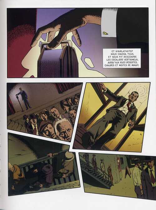 Cinq ans ont passé depuis l’épisode précédent. La crise de 1929 frappe les Etats-Unis, puis le monde. En Allemagne, un dingue a petite moustache conquiert le pouvoir. Aux USA, le Klan devient de plus en plus puissant, et il est connu que ses membres influents lisent beaucoup Les fontaines de la connaissance. Les insouciantes années 20 sont mortes, on entre dans une période inquiétante. Dans les colonies, les peuples « primitifs » secouent le joug des Occidentaux jadis tous puissants, la science semble faire des progrès mais vers quelles directions ? Faut-il voir, comme le policier Martin Poole (qui épluche chaque jour les journaux) dans ces évènements effrayants l’influence pernicieuse du gourou de Rusty Mountains, Ali Abu Assif, dit « Nyarlathotep » ? Son influence est plus grande que jamais, Républicains comme Démocrates lui mangent dans la main. Le livre « the new Cross » montre bien la compatibilité entre ce qu’on appelle « la sagesse égyptienne » et le christianisme. Les foules marchent en somnambules au bord de l’abîme, à quoi rêvent-elles ? A quelles folies descendues des étoiles hurlantes ?