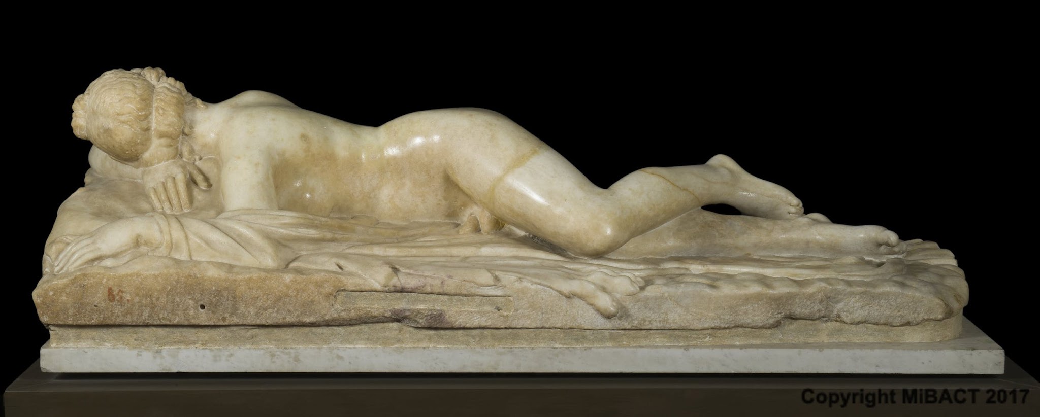 On termine avec quelque chose de plus joli, mais étrange quand même, l’hermaphrodite couché. Pour une raison que j’ignore, on ne pouvait voir que le côté face (première image), impossible d’entrer dans la pièce pour en faire le tour. De quoi avaient-ils peur ? Des militants queer venus caresser la chair de marbre ? Des fanatiques religieux qui voudraient massacrer cette aberration. Je vous laisse croiser son regard, de l’autre côté.