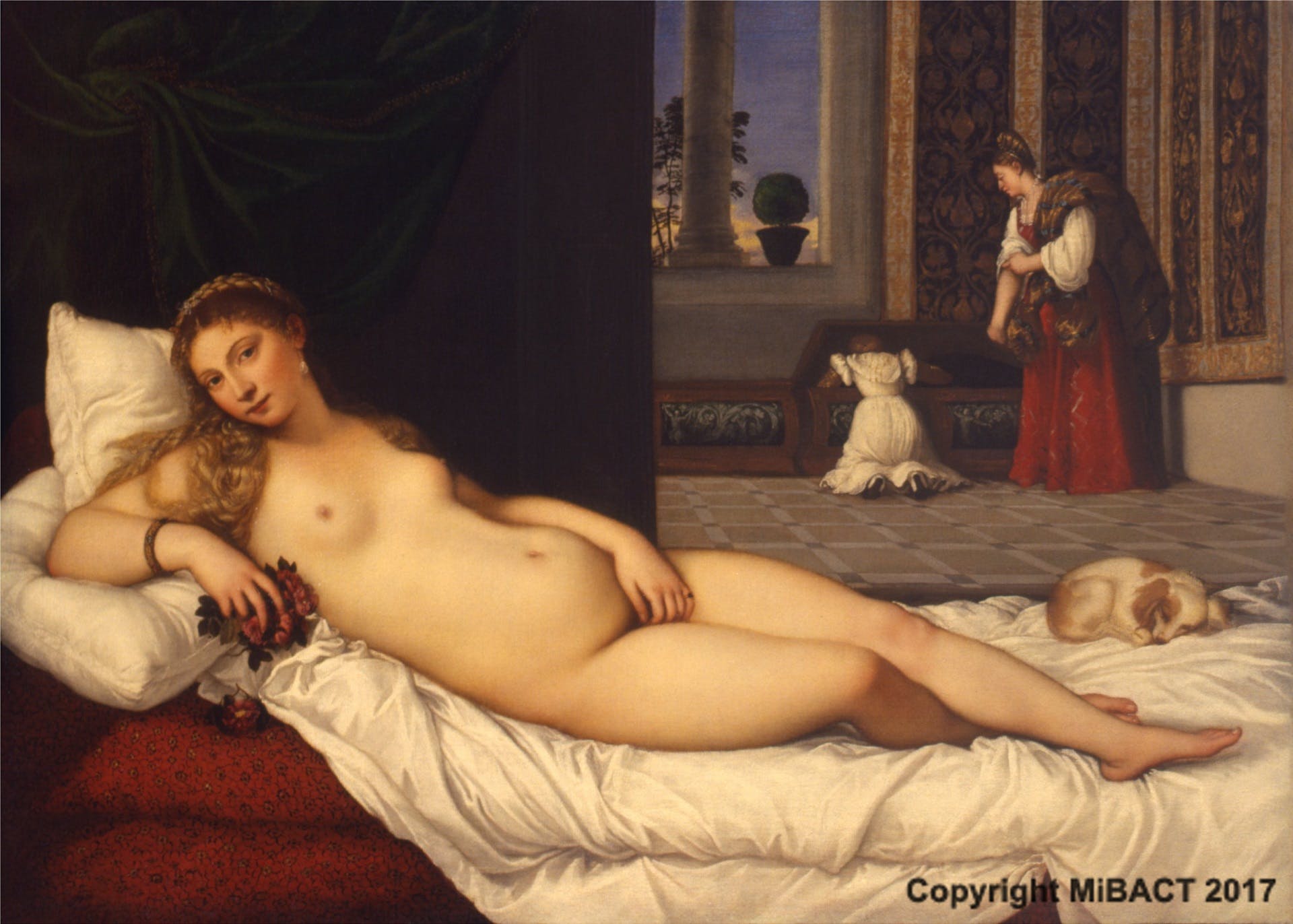 Comme disait le duc d’Urbino, qui l’a acheté : « ce tableau, là, avec une femme nue ». Tiziano saute le pas : ce n’est pas un sujet mythologique (genre, Vénus, une nymphe, whatever), c’est juste une belle fille sur un lit. Derrière, les servantes sont allées chercher les fringues, mais c’est trop tard, le tableau est fini.