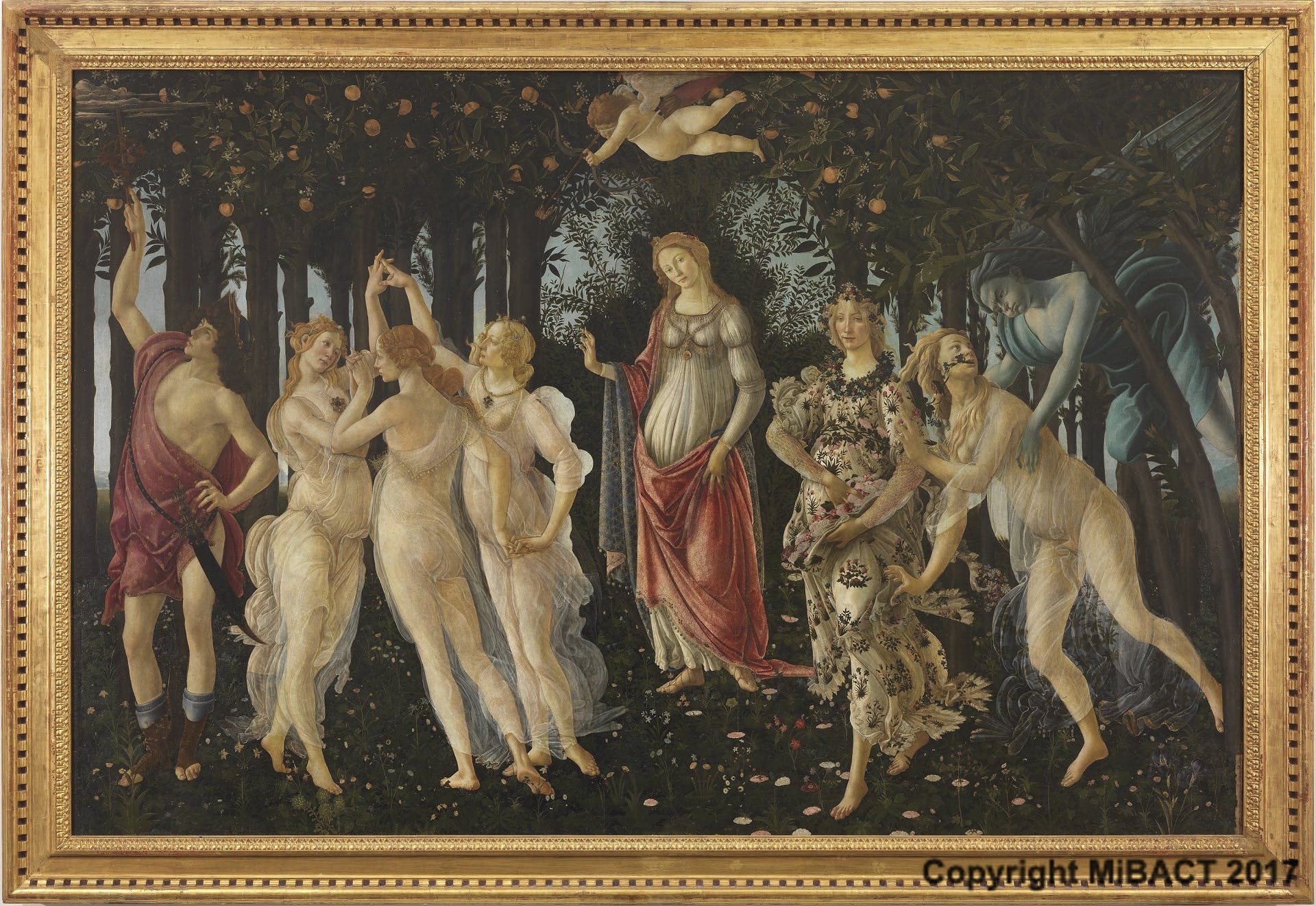 Encore plus que le précédent, ce tableau est une image hyperconnue. Pourquoi le voir en vrai ? Là aussi, il est grand et il vous absorbe, on y entre. Venus, au centre, attrape tous les regards, l’air de rien, l’air de ne pas y toucher. Elle se masque à peine, juste ce qu’il faut pour que personne ne se mette en colère de la voir ainsi. Ses cheveux d’or ruissellent. Elle ressemble à une idole de maintenant, souriante et vaguement absente à ce qui se passe. Sur la droite du tableau, son assistante, qui la voile, qui la dévoile ?, et sur la gauche un ange, un esprit aérien, c’est peut-être le même que dans le printemps, d’ailleurs il porte une femme accrochée à lui, finalement il ne l’a pas enlevée ?